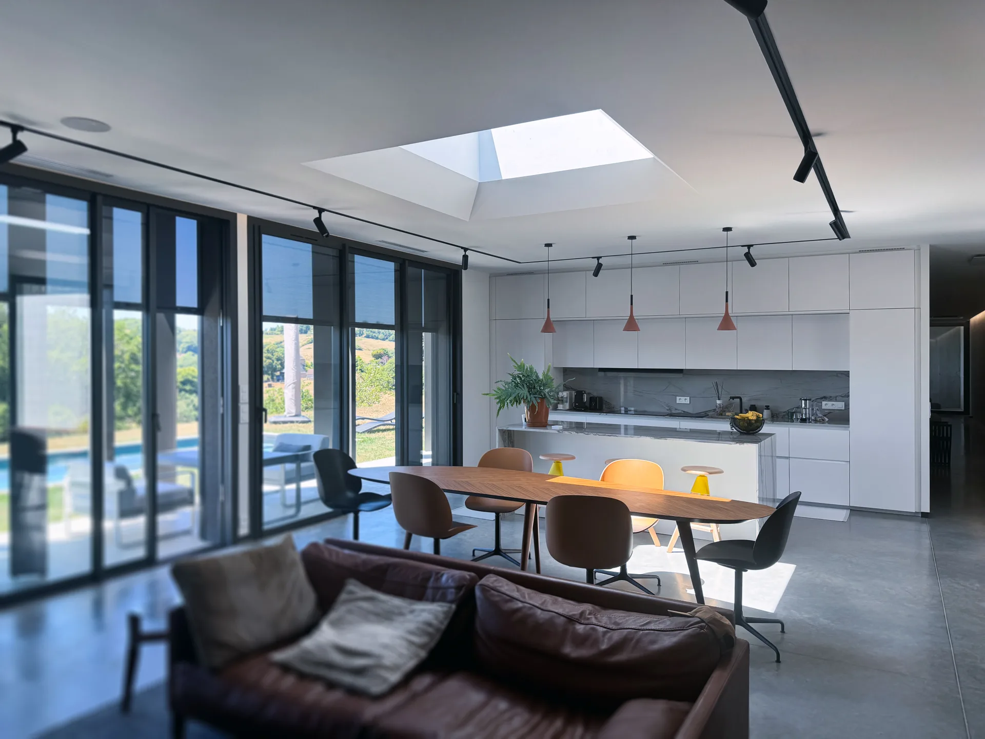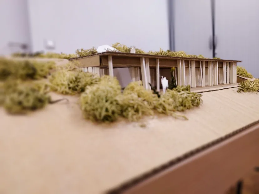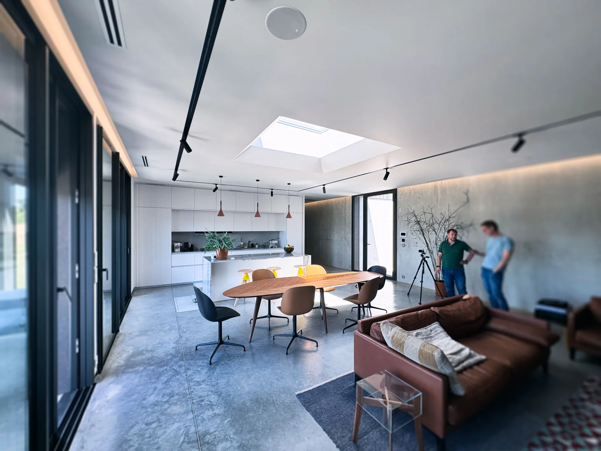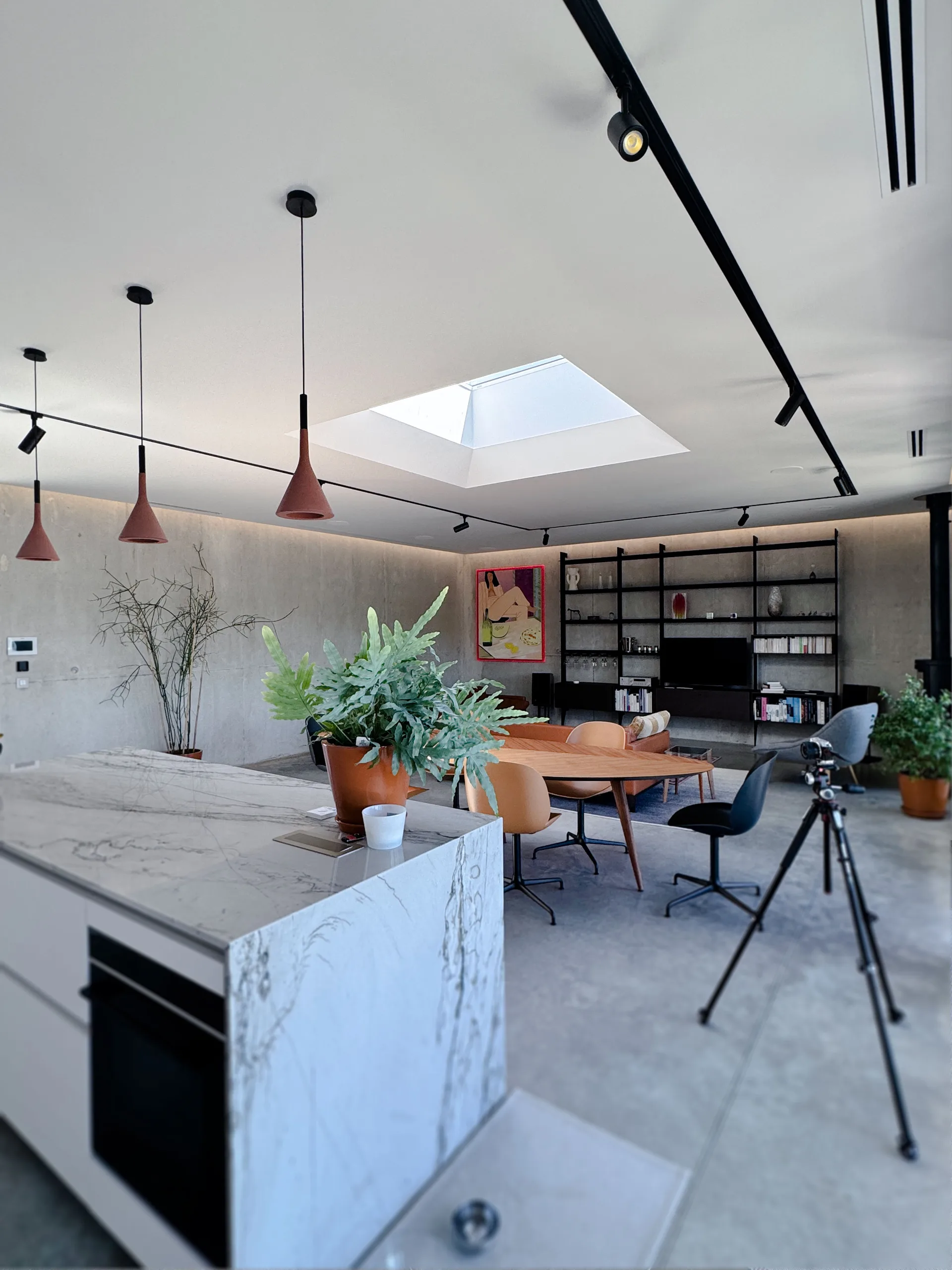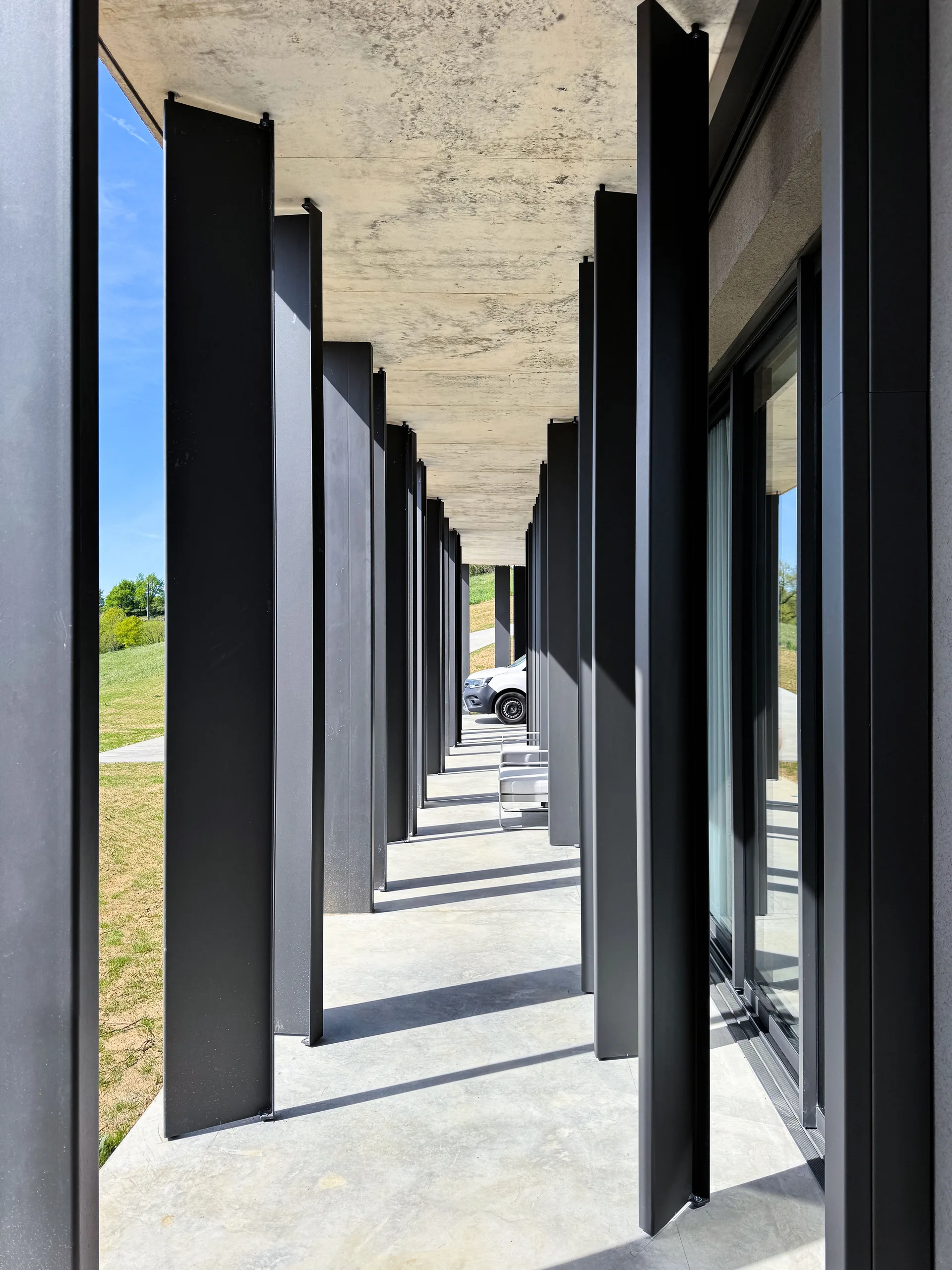 La conception de cette maison individuelle naît d’un équilibre fragile entre intimité et ouverture, entre nature et être humain, entre forme et espace. C’est un projet sur l’harmonie — avec le paysage, avec soi-même, avec le temps. Nous avons l’habitude de percevoir la maison comme des murs et un toit, comme un objet clos. Mais ici, la maison n’est pas un objet. Elle est le prolongement de la colline, une partie du paysage tissé par les siècles. Son image n’est pas seulement une architecture, mais un geste psychologique qui nous ramène à l’origine.